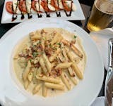 It starts with genuine, hand-tossed dough made from 100% Italian semolina wheat with no additive or preservatives. Next, the sauce. Vine-ripened tomatoes are hand-crushed, simmered and enhanced with a generations-old family recipe. Then, we add 100% pure, fresh mozzarella cheese that comes from a small local dairy farm. Are you getting the picture… Now comes the cooking itself. We pride ourselves in making finger-licking authentic pizza, just as Grandma did for generations. And it’s what sets Garlic Pizzeria apart. We have developed a way for our customers to have the exact same experience with the same quality ingredients that Grandma incorporated into our families tantalizing memories. A FRESH SERVING OF AUTHENTICITY As many restaurants expand, they begin to find faster, easier and cheaper ways to produce menu items. Not Garlic. Today, we go to the same great lengths to ensure the freshest ingredients possible. Many items are imported directly from Italy: aged balsamic vinegar, Grana Padano cheese, Prosciutto di Parma, aged Chianti, 100% organic olive oil, select spices, and the list goes on. We are proud to make our own dough and you will never find canned sauces or frozen vegetable in our kitchen. We ensure our quality preserves Grandma’s recipes and meets our customers satisfaction.